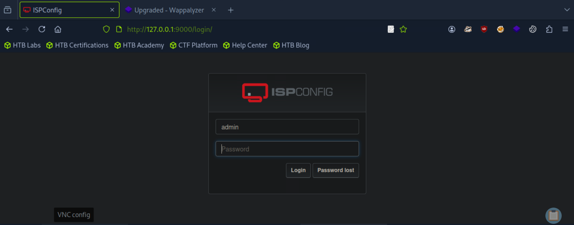 Looking at the page source of the admin panel I found the line <link rel='stylesheet' href='themes/default/assets/stylesheets/ispconfig.css?ver=3.2.2' />, which meant it was running ISPconfig 3.2.2 and was thus vulnerable to CVE-2023–46818.