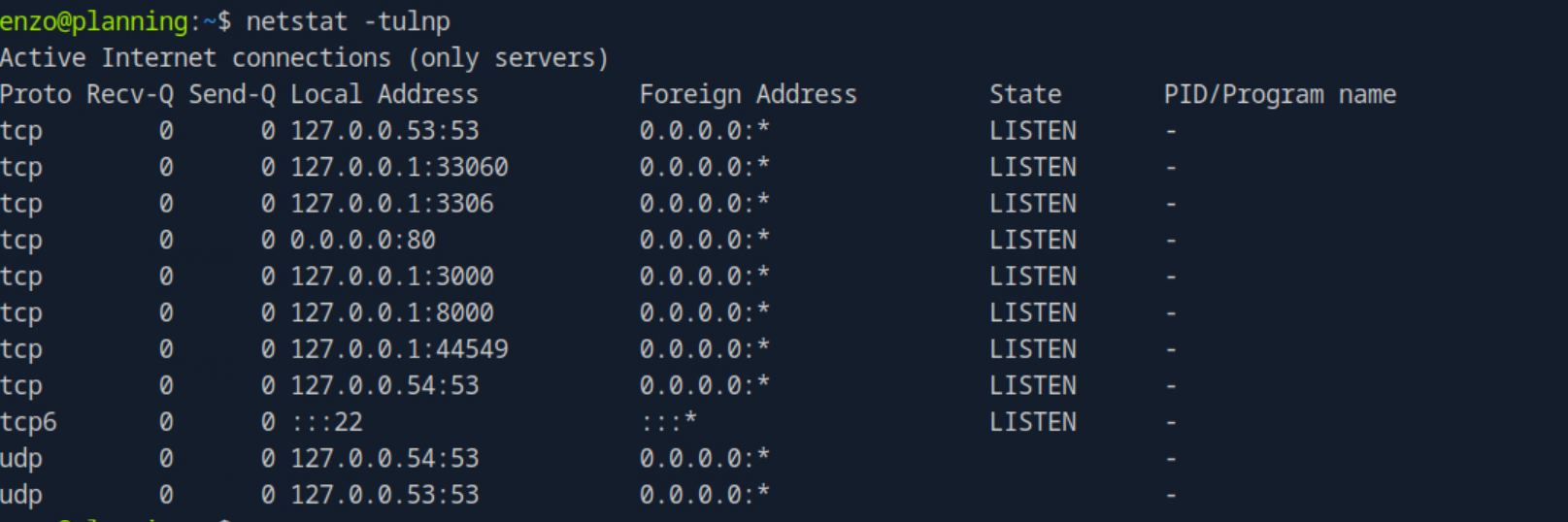 Eventually I decided to see if there were any interesting connections on the machine with netstat -tunlp