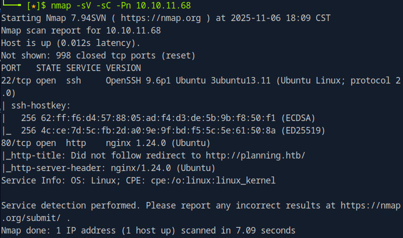 Planning is an easy difficulty Linux machine. For this machine we were only given the IP address 10.10.11.68 and the credential admin / 0D5oT70Fq13EvB5r