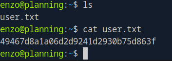 Figuring these belonged to one of the users on the machine I attempted to connect to the ssh instance on port 22 I found earlier, and managed to log into the enzo account, who had the user flag right there in their home directory.