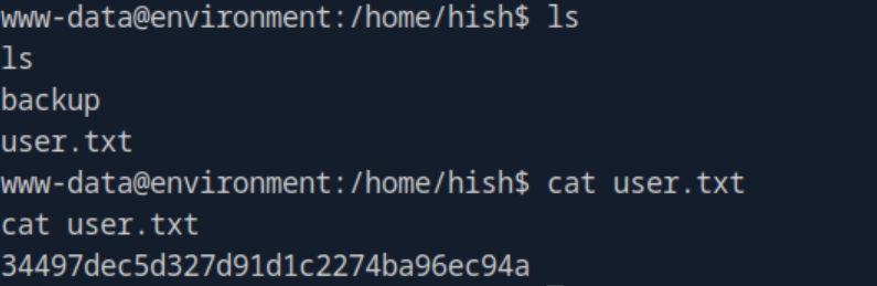 Success! I now had a shell on the machine as the user www-data and was able to obtain the user flag from /home/hish.