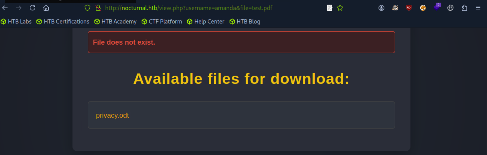 After uploading a file I looked at the page source and noticed that files are referenced using ‘‘view.php?username=test&file=test.odt”. This meant the webpage was vulnerable to Insecure Direct Object Reference, where we might be able to access other files on the machine by simply knowing the username and filename.